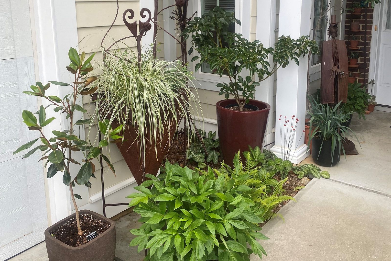 Eve loves to collect plants. Before moving to Wilmington in the late 1980’s they lived in Houston. In this subtropical climate, Eve became interested in plants and was an avid bromeliad gardener. When they moved to Wilmington the property had some old fruit trees on it. In an effort to learn more, she started taking continuing education courses at Longwood. Her voracious appetite for knowledge fueled the creation of her garden in Wilmington.