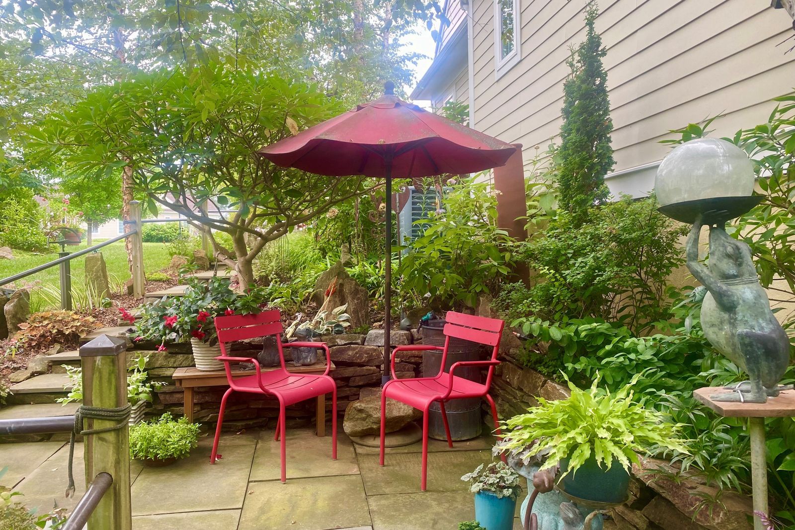 Even though they have downsized with their move to the retirement community, Eve remains passionate in her collecting. She has an amazing “eye” for finding the most interesting plants and placing each one in the perfect spot in the garden. Because she is a curator at heart every plant in her garden is cataloged and labeled.