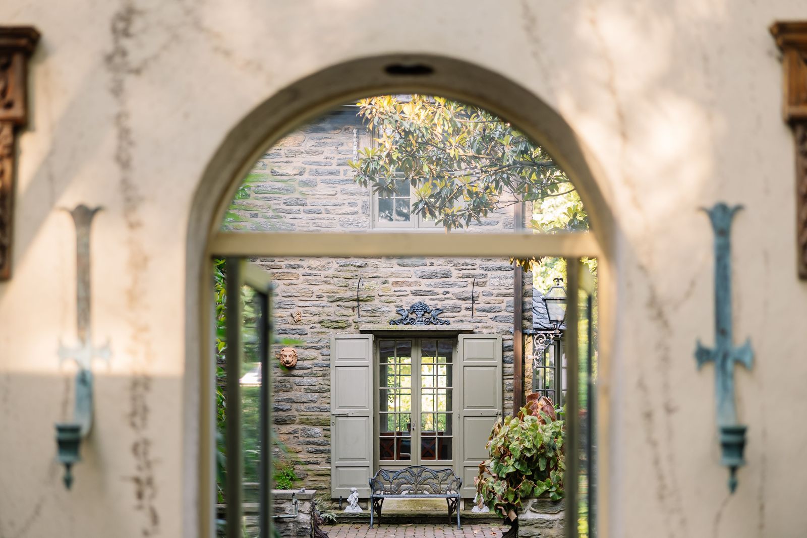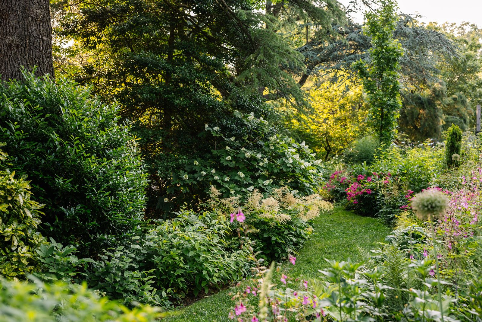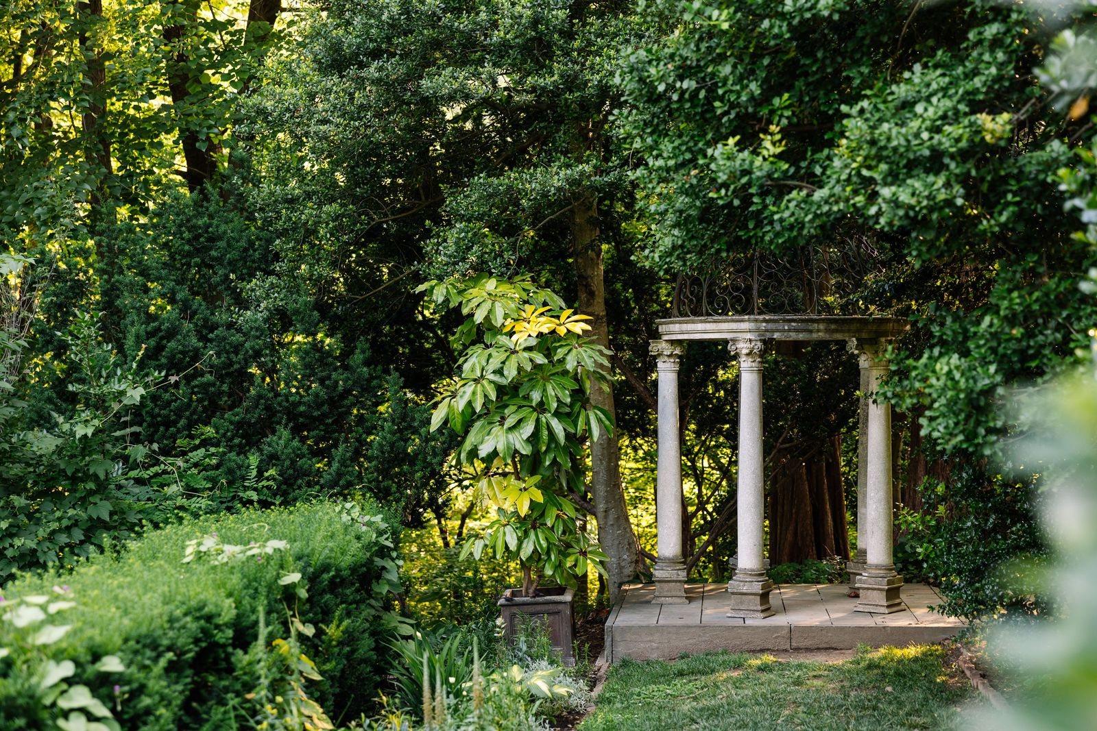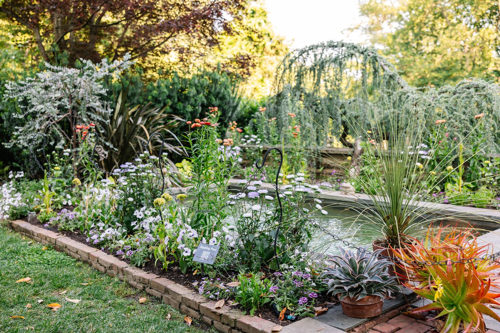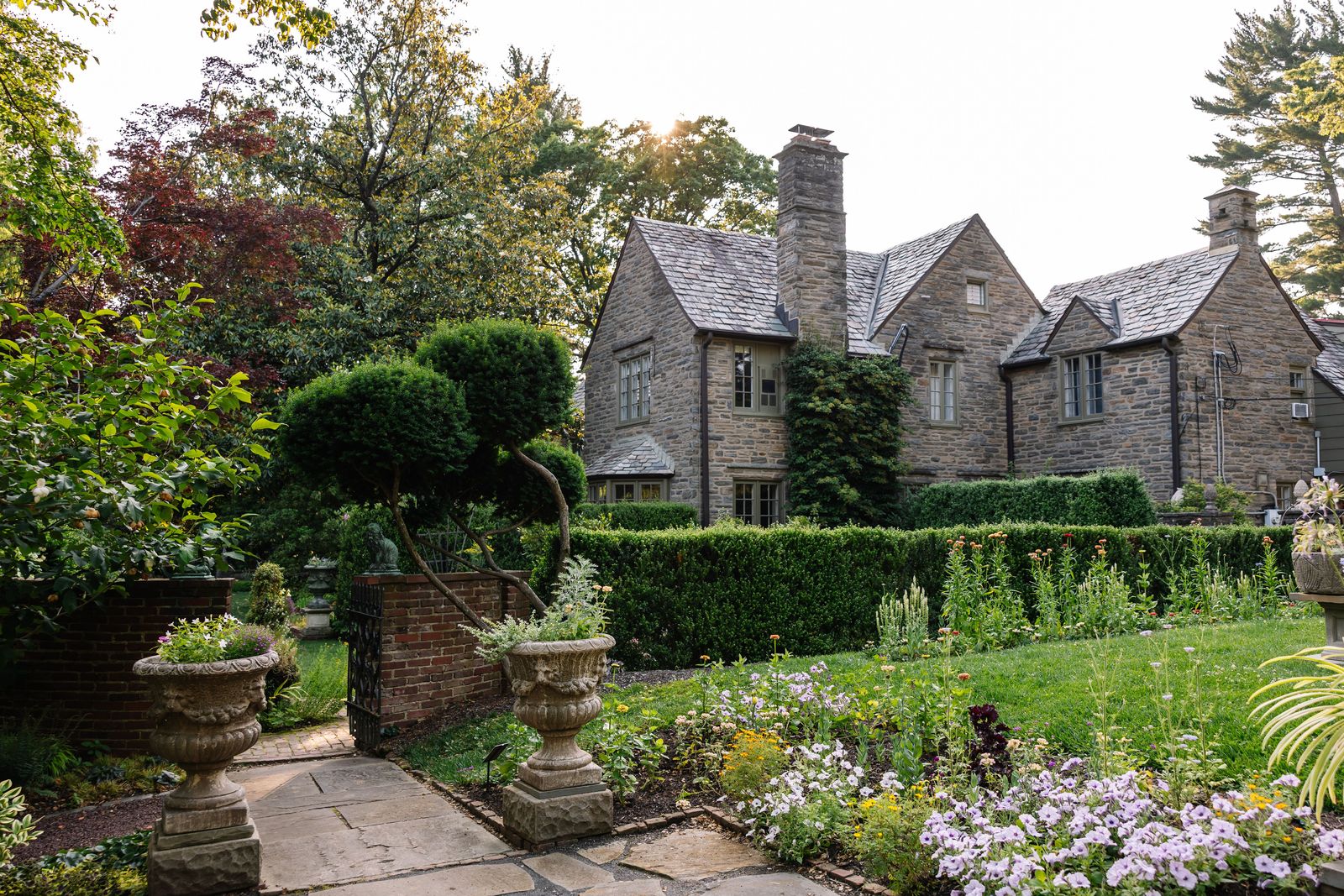 Explore the estate's serene grounds, including xeric beds, an herb garden, and even an intricate stone wall garden adorned with whimsical, statuesque trees with cloud and espalier pruning.