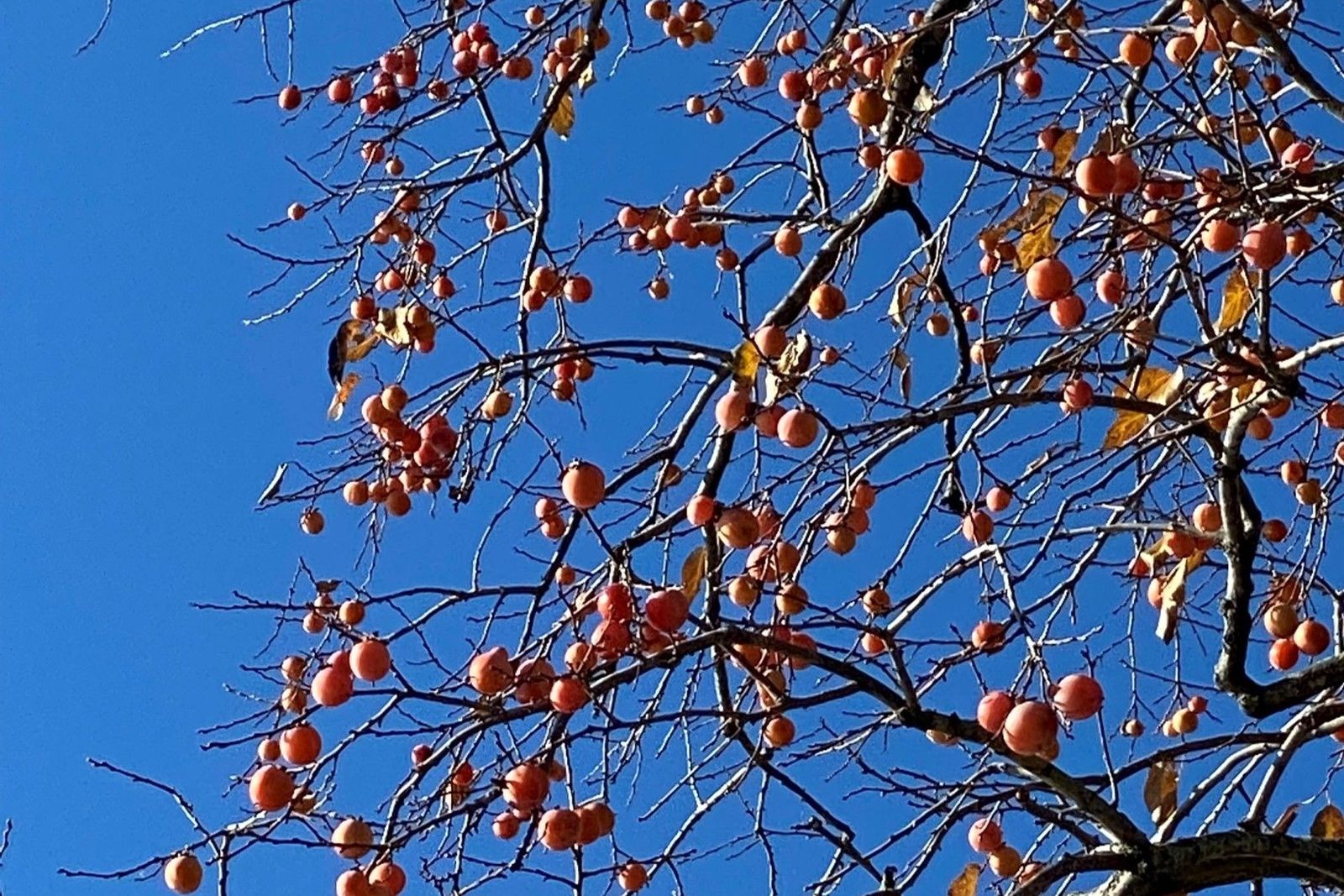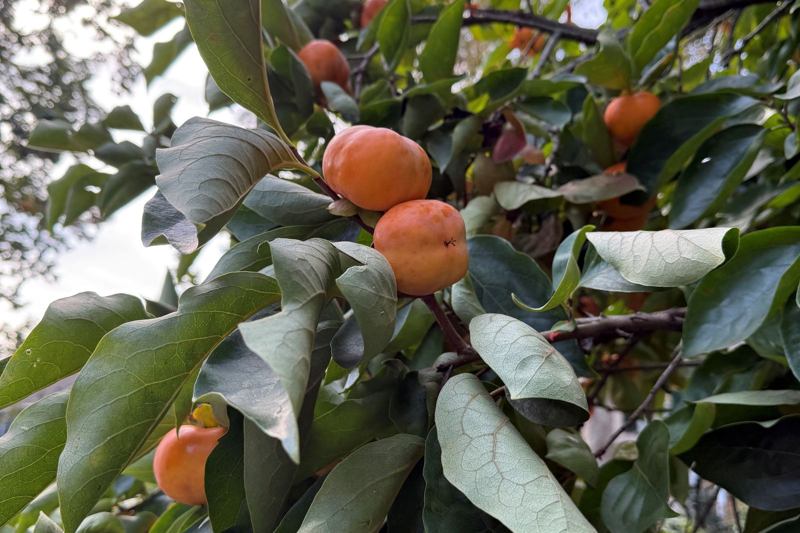 In my home garden I have four Diospyros kaki ‘Saijo’ that flank a seating area in the central part of my vegetable garden. I planted these trees as young trees that were about five feet tall. Ten years later they are approximately 30 feet tall and bear beautiful egg-shaped orange fruits about three inches in length. While the fruit every year they seem to have a bumper crop every other year.